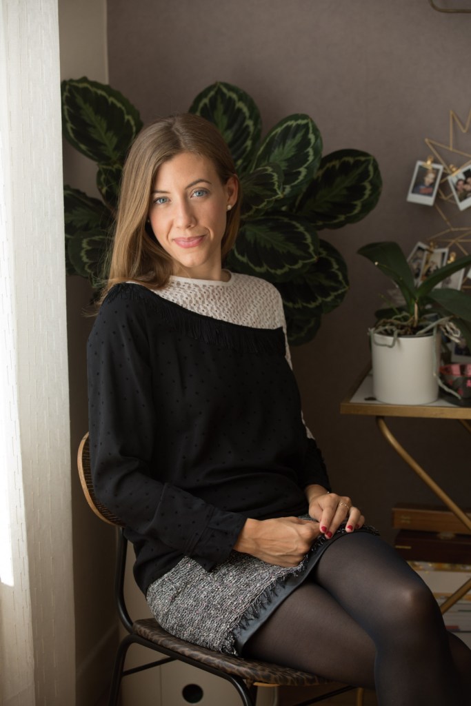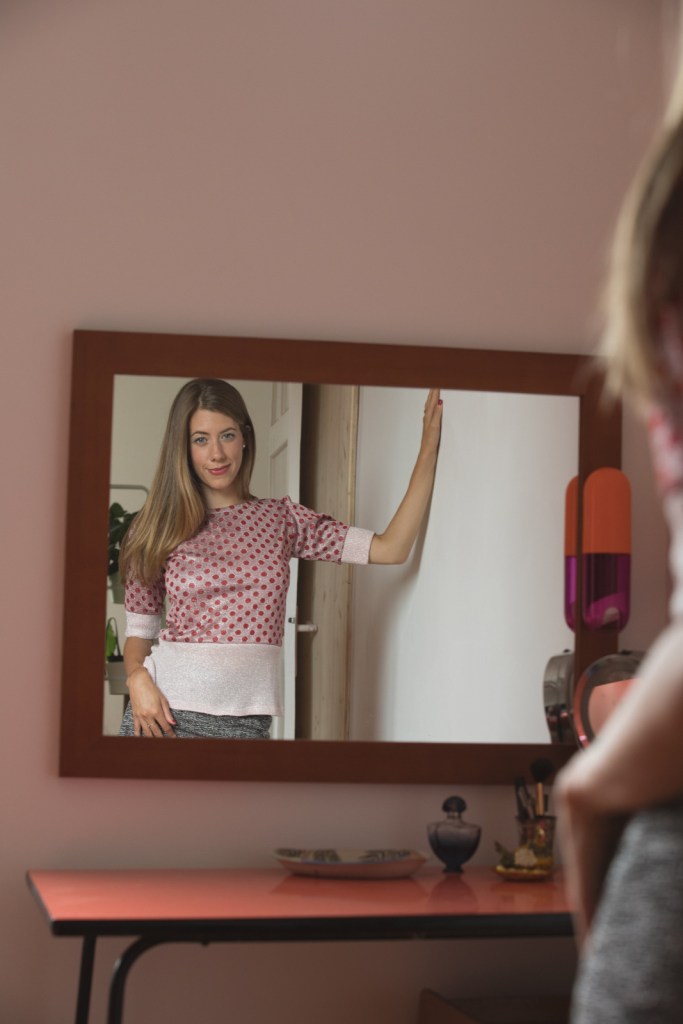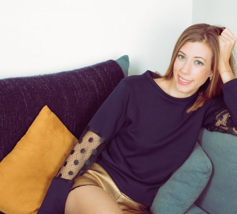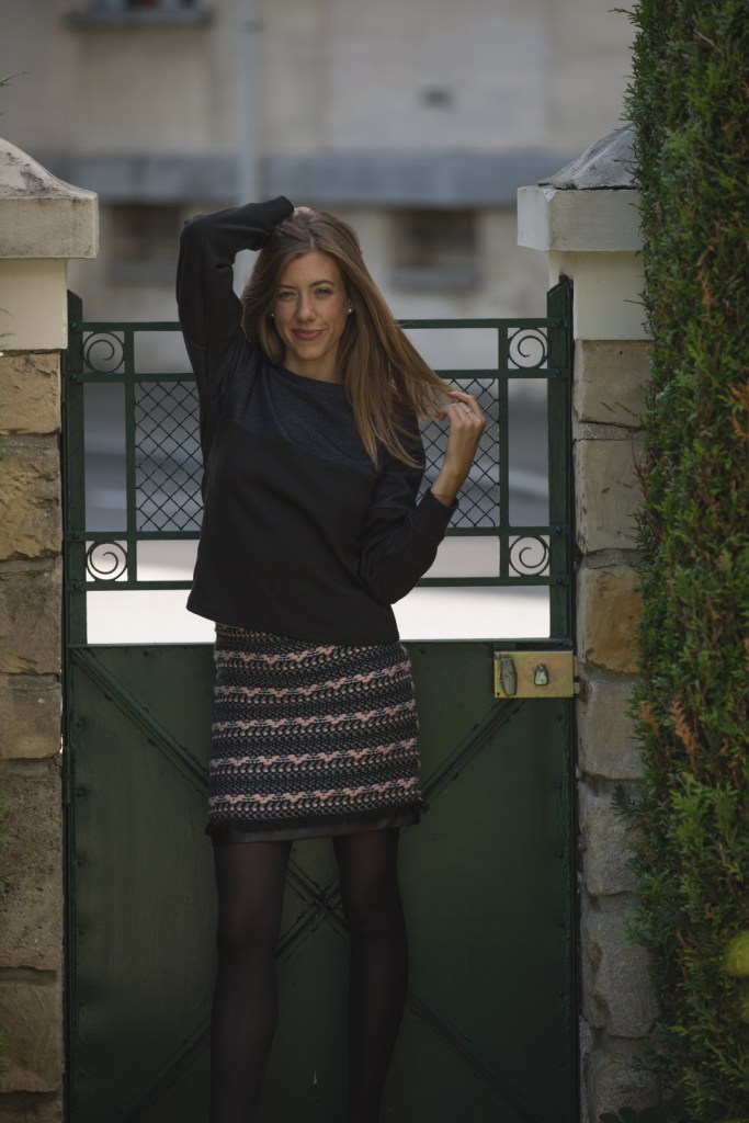 Pull Victor bleu jean et noir et Jupe Alfred noir et rose