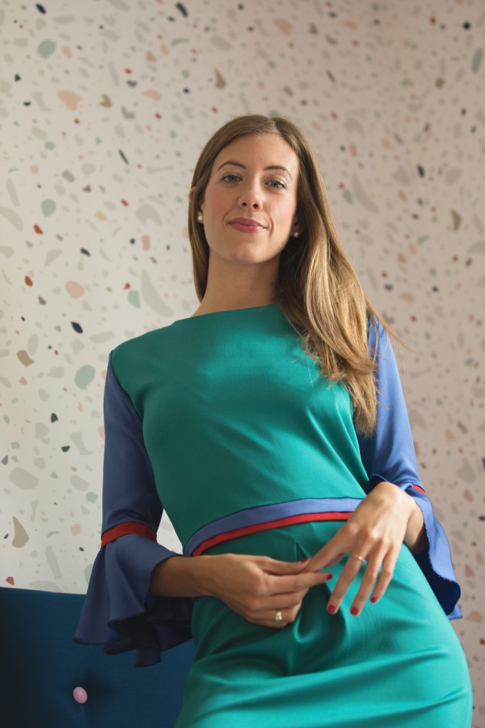 Robe Gala vert / bleu cobalt /rouge