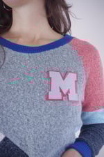 Le Pull Maddy dynamise la saison froide avec ses découpes colorées et texturées : un patchwork de laine douce et de fils pailletés qui capte la lumière à chaque mouvement. Son écusson M apporte une touche sport-chic, clin d’œil aux sweaters universitaires revisités 💫